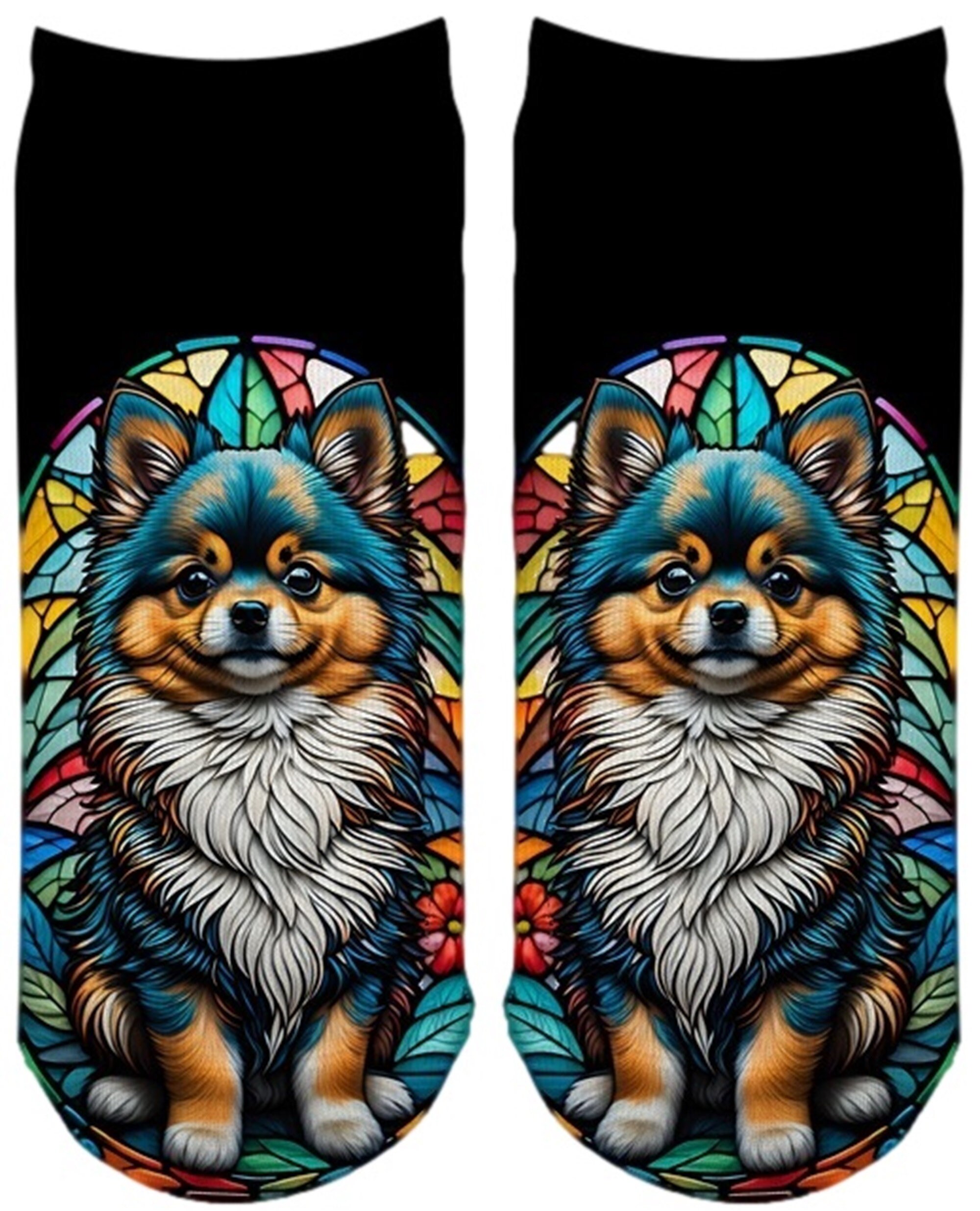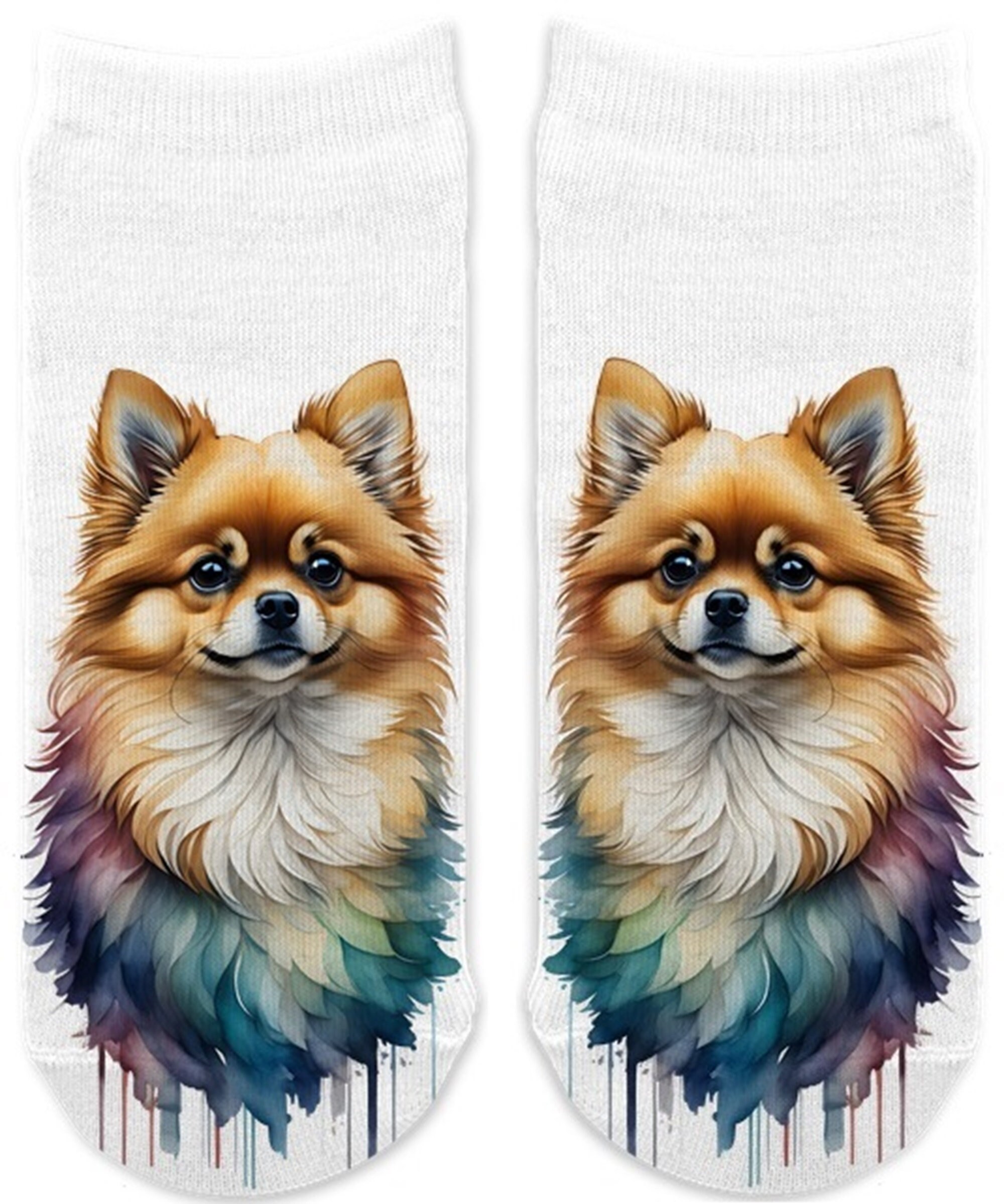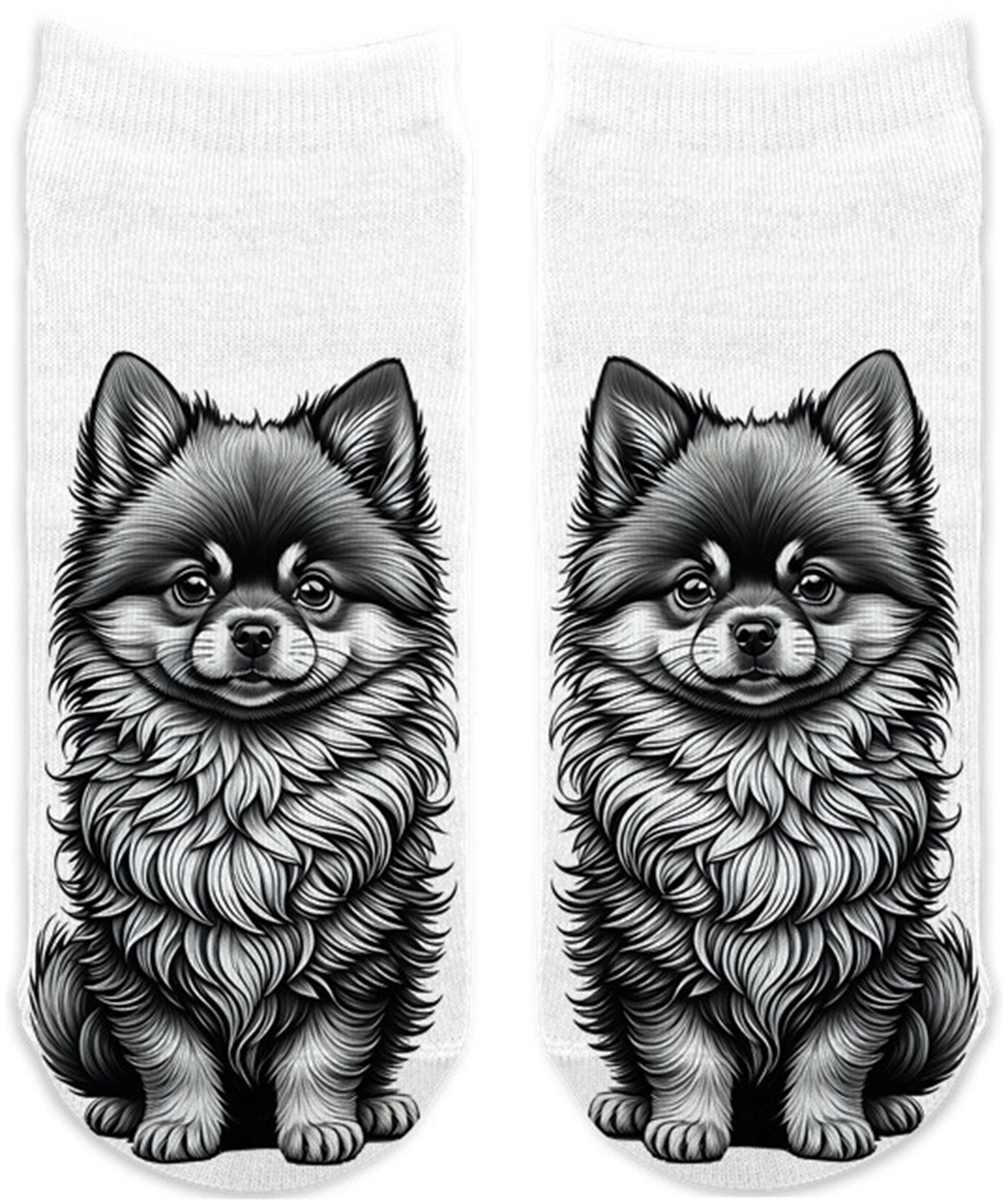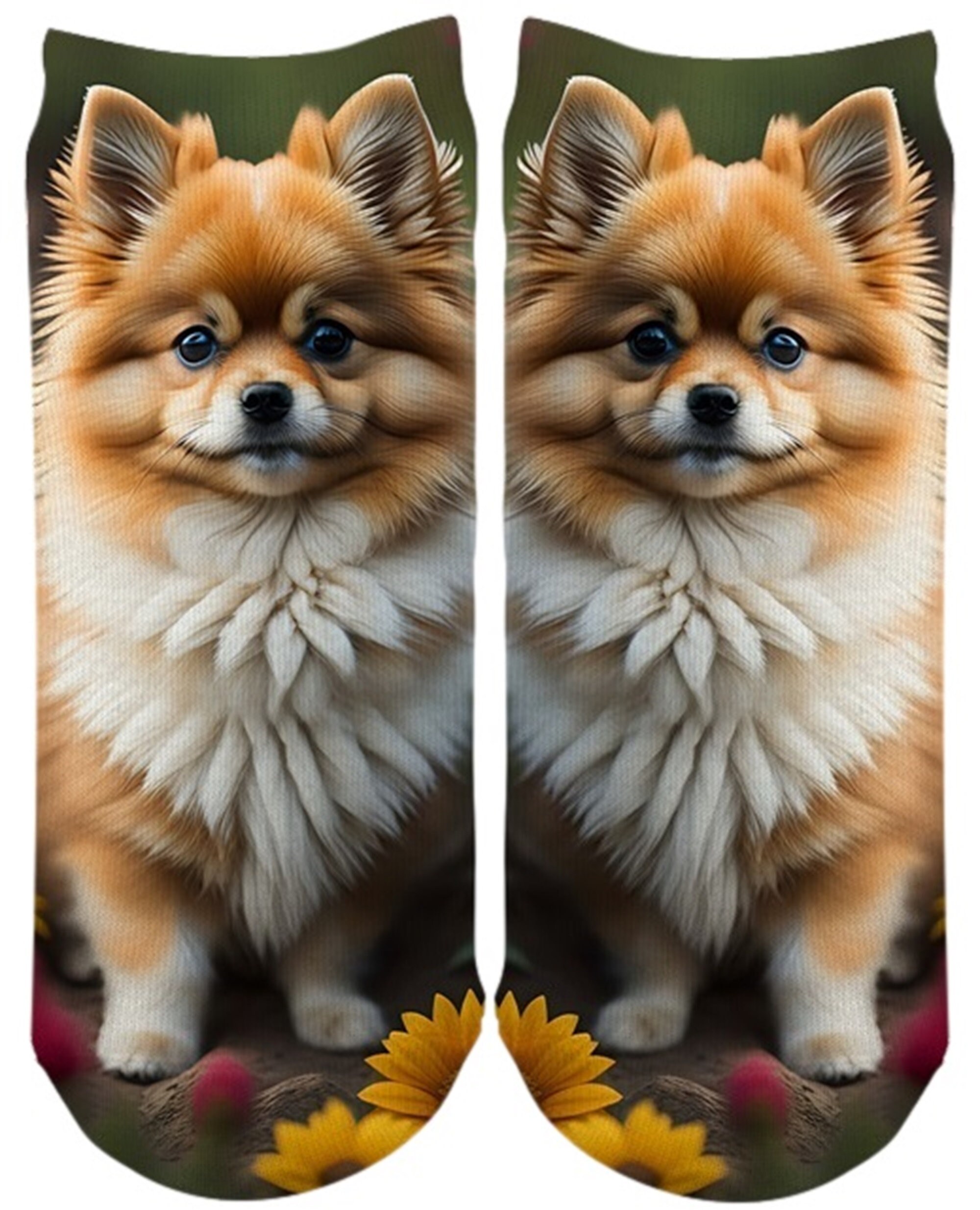 Pomeranian Dog Breed Socks – No Show Ankle Footwear – Puppy Lover Artwork Accessory – Men Woman Size Apparel – Pet Owner Gift